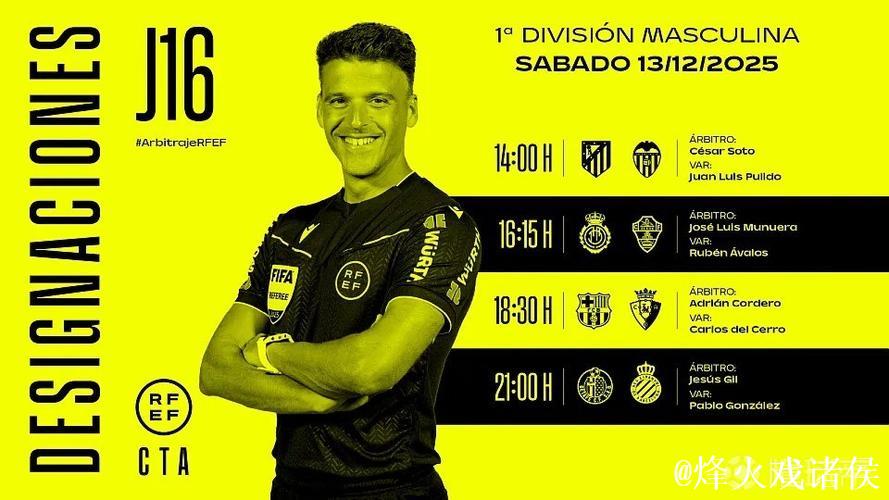 本周末西班牙足球再度迎来密集赛程,西甲联盟也在赛前敲定了新一轮焦点战的裁判安排,其中最受关注的莫过于巴塞罗那坐镇主场迎战奥萨苏纳的比赛。据官方公布,本场比赛将由西班牙本土知名裁判科尔德罗(Corder